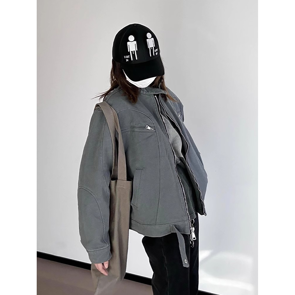 复古 潮流刺绣撞色夹克美式 森马外套女连帽插肩袖 宽松上衣女士秋季