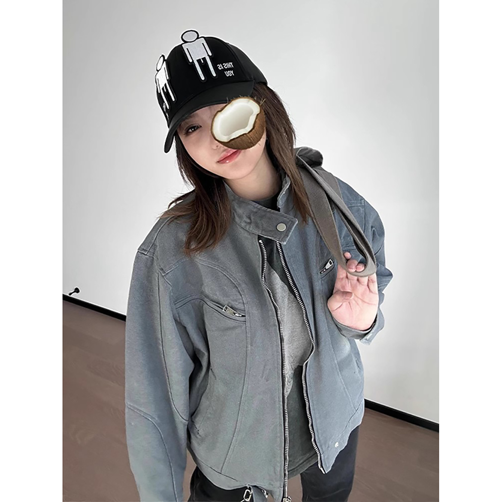 森马外套女短款 正肩紧身连帽夹克百搭 分割纯色显瘦小个子衣服秋季