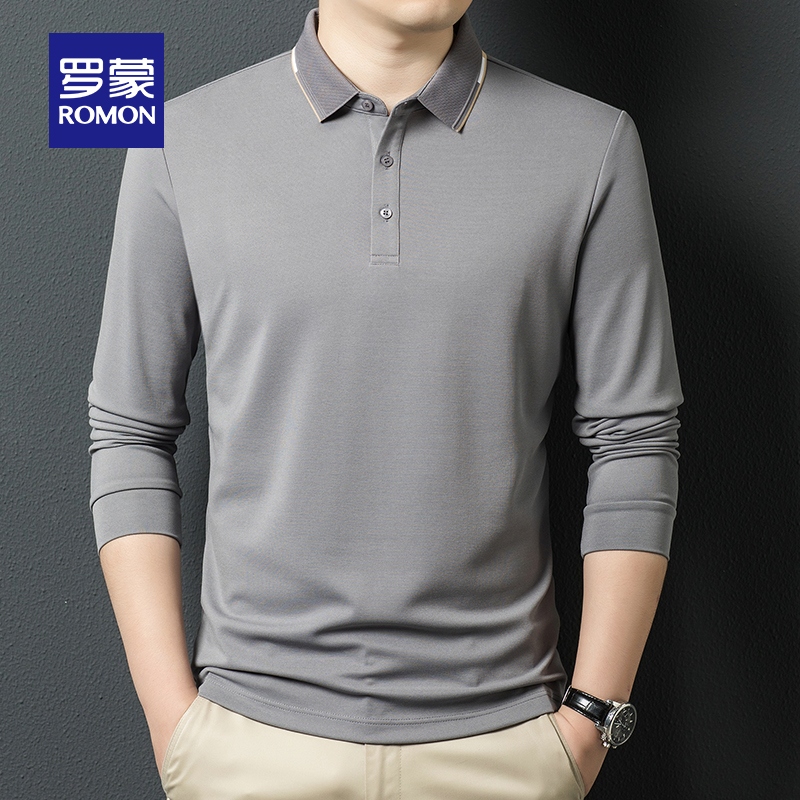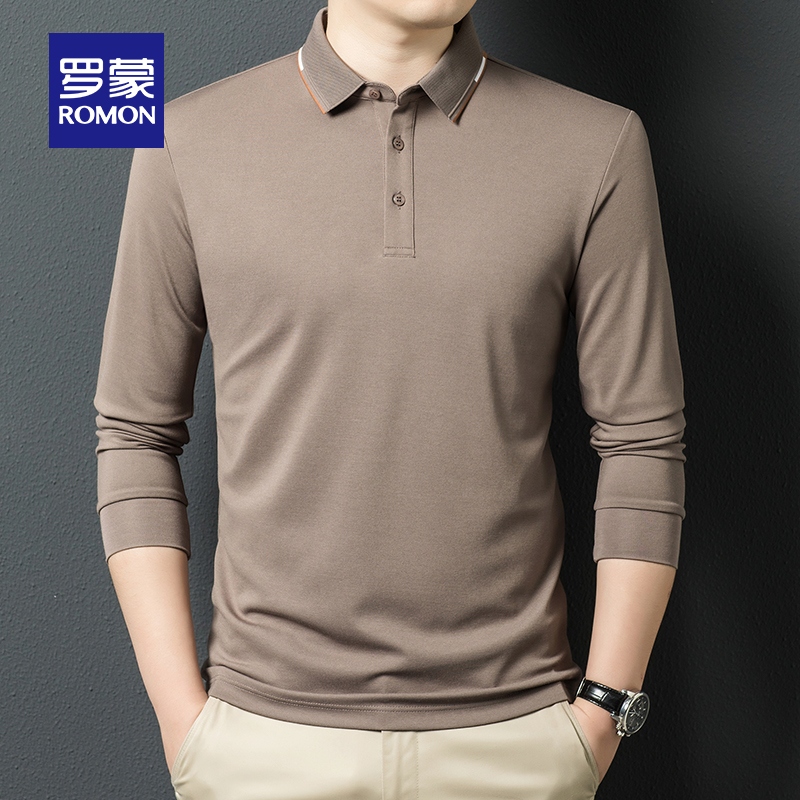 polo衫 商务休闲宽松纯色大码 男士 新款 t恤上衣男 2025秋季 罗蒙长袖