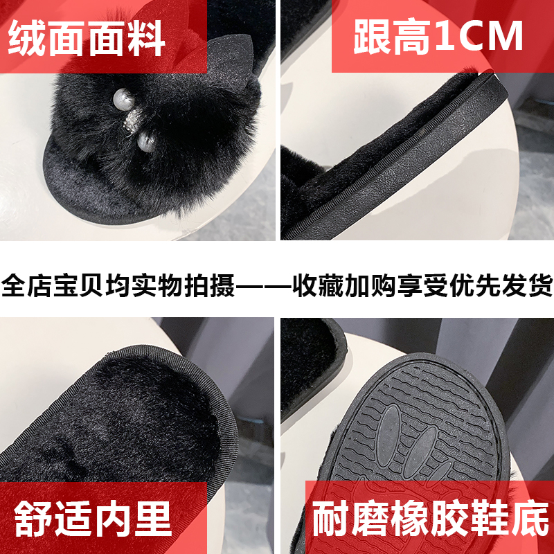 2024防滑软底室内平底女鞋 新款 女家居春季 软fufu毛茸茸小猫咪拖鞋