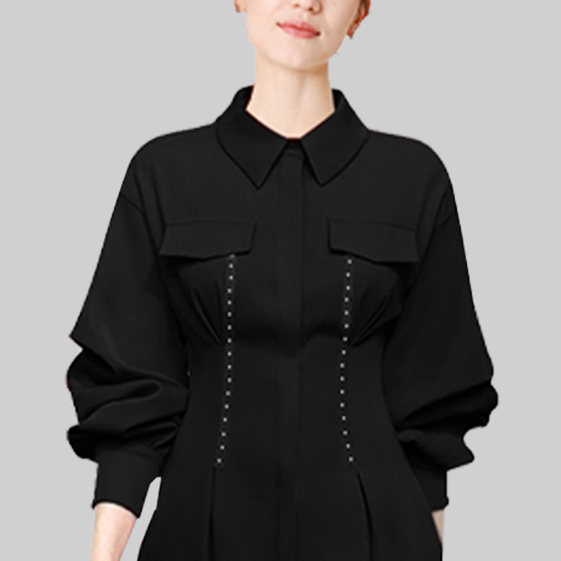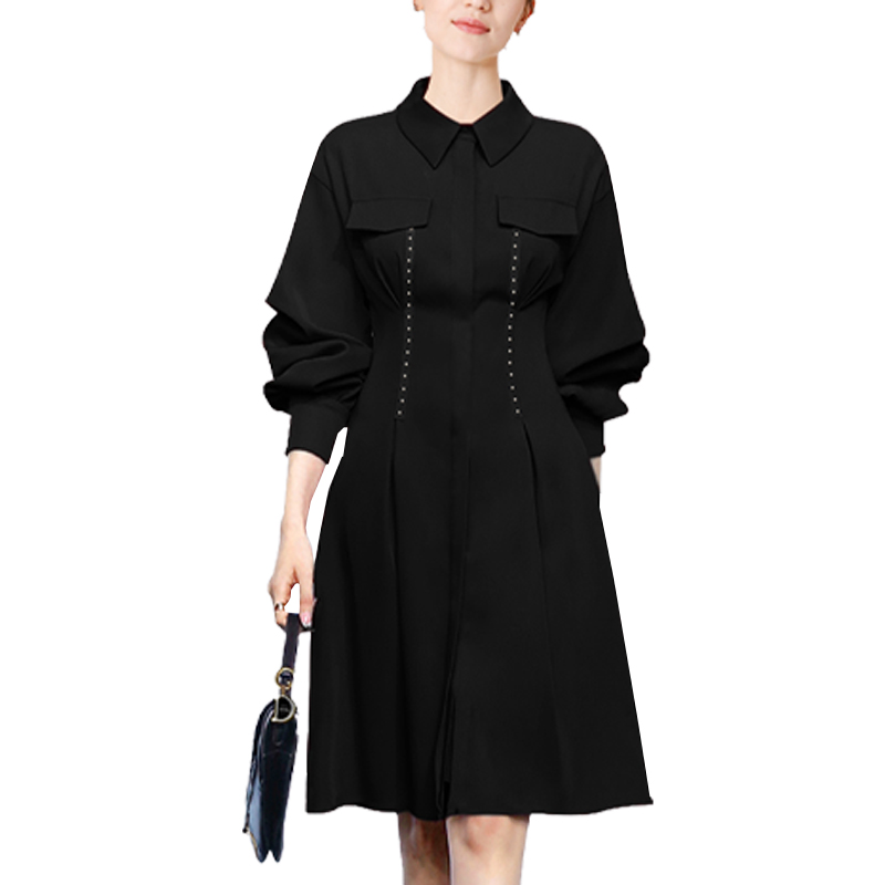 裙子05465855 拼接好看宽松圆领长袖 佐丹奴假两件连衣裙女秋季 新款