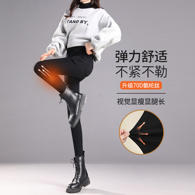 压力显瘦黑色秋冬加绒保暖薄绒连裤 外穿新款 袜 女秋薄款 灰色打底裤