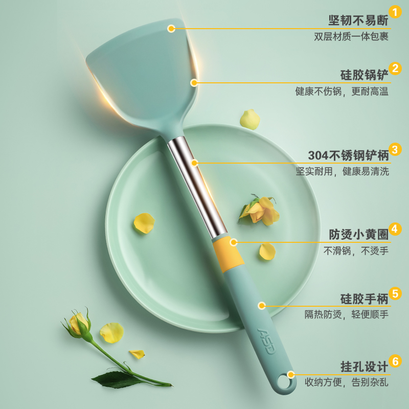 爱仕达硅胶铲护锅铲不粘锅专用铲家用炒菜耐高温铲子厨具锅铲