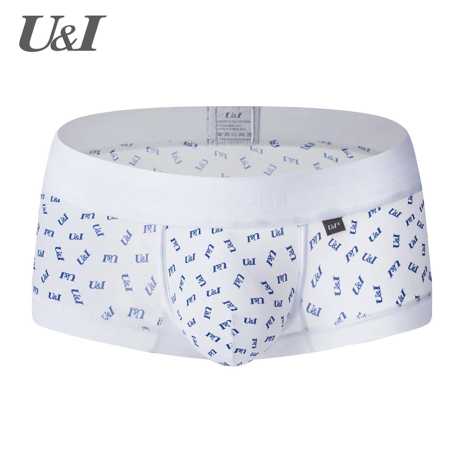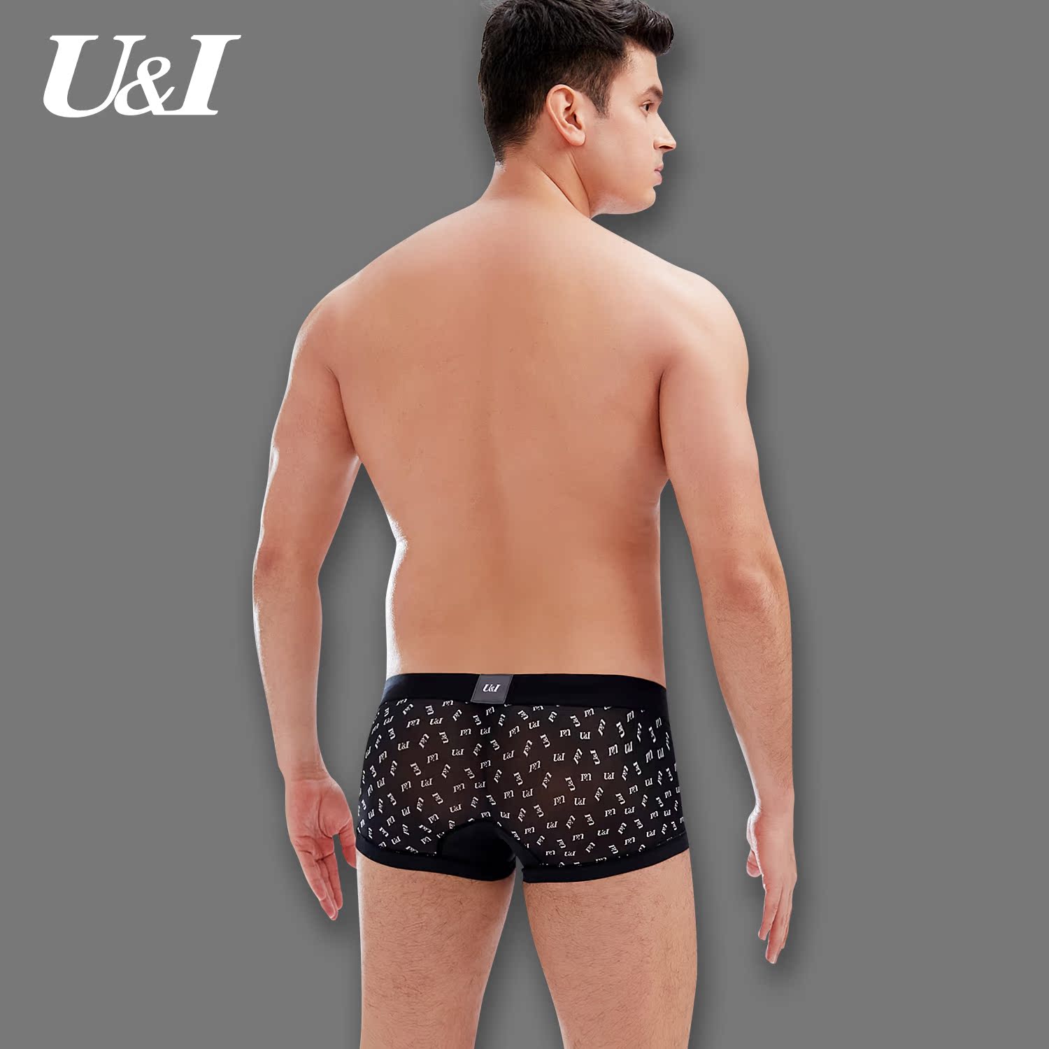 潮流印花冰丝透气舒适凹凸囊袋四角裤 U&I内裤 男平角超薄个性
