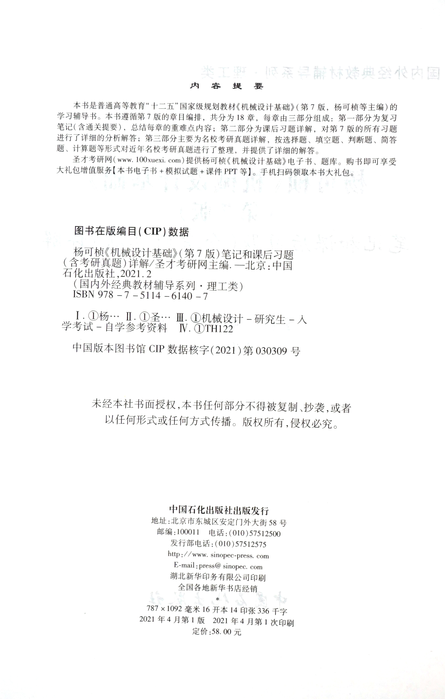 笔记课后习题含考研真题答案详解 七版 圣才考研笔记 9787511461407 社书籍 备考2022 石化出版 杨可桢机械设计基础第7版