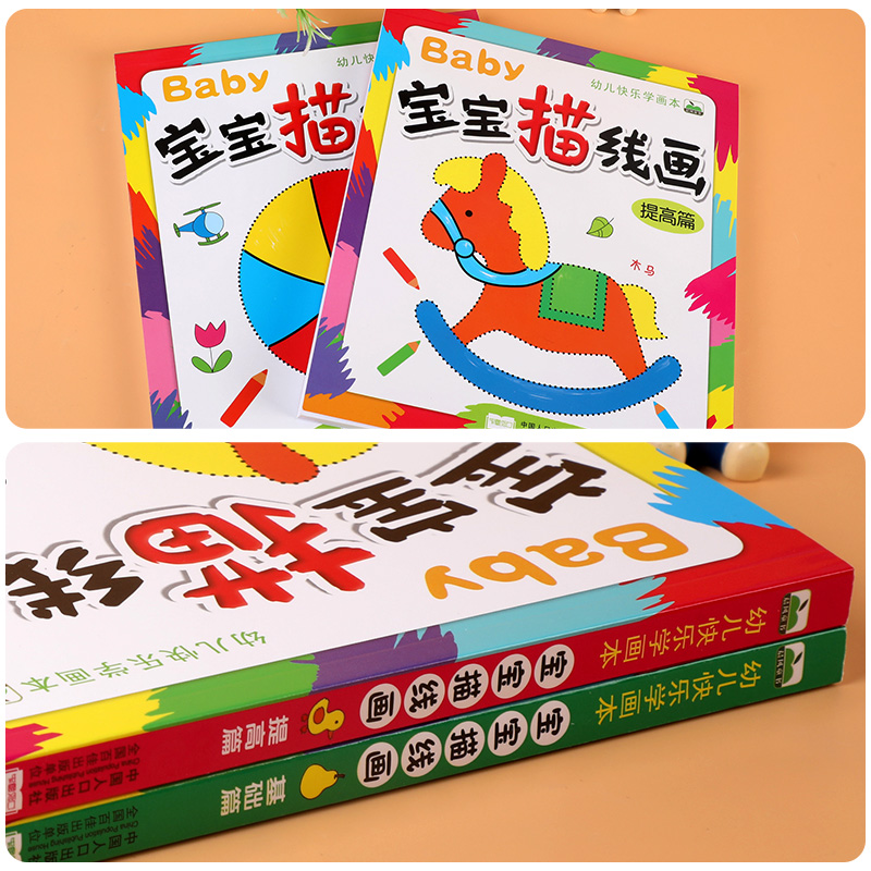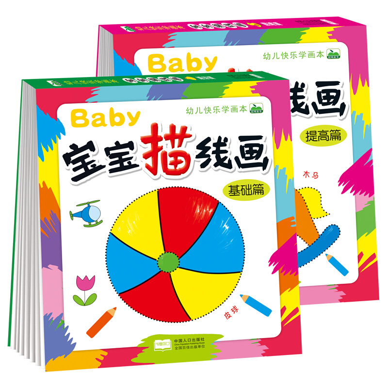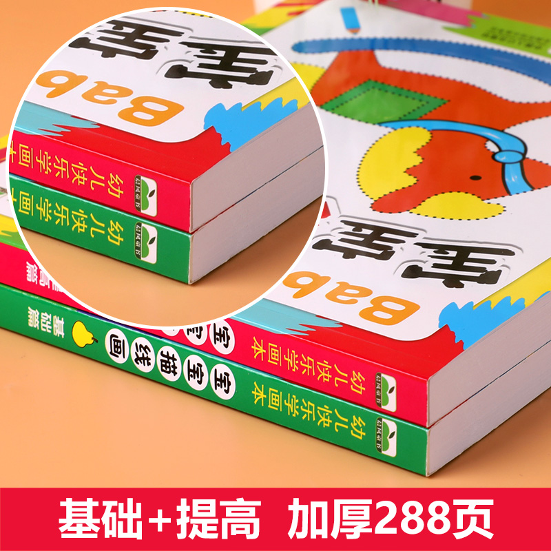 提高篇全2册0 6岁儿童绘画启蒙教材美术手绘本线描画临摹本学画画书籍宝宝涂色书 共288页幼儿快乐学画本宝宝描线画基础篇 加厚版