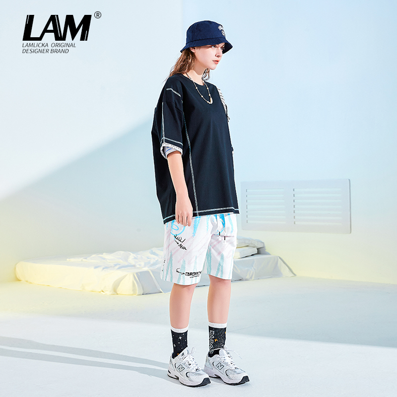 情侣短裤 女潮ins宽松潮牌纯棉5分裤 白色五分裤 LAMLICKA小恶魔夏季