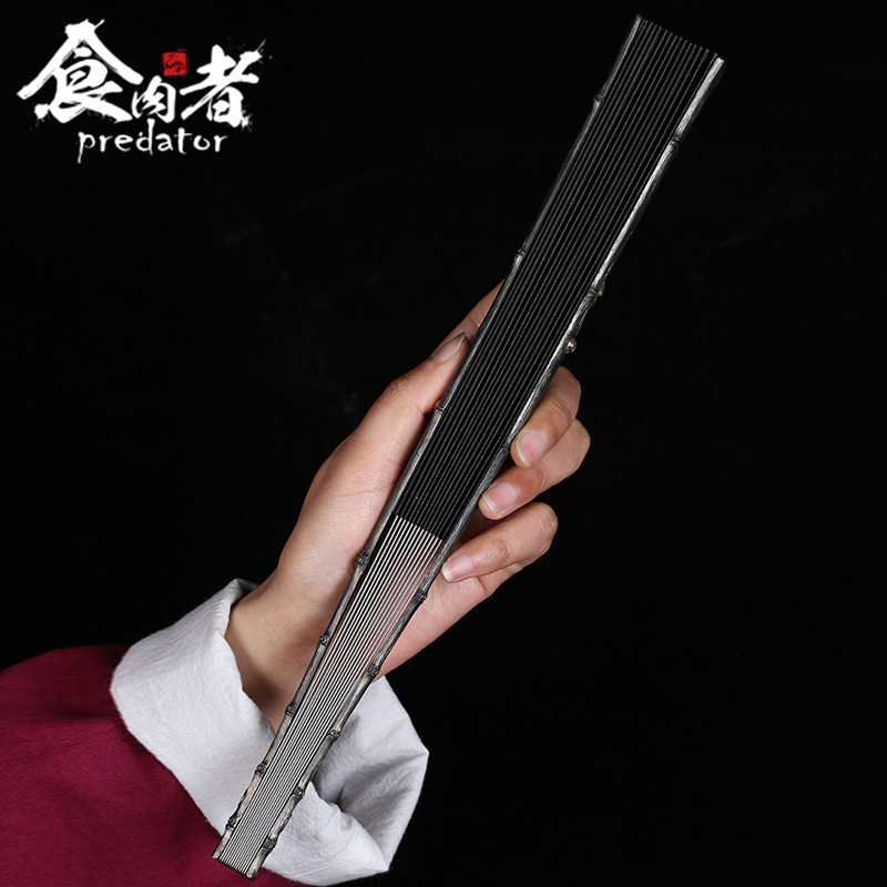 食肉者钛合金墨竹铜芽折扇子嵌银金太极功夫铁骨防身金属便携送礼