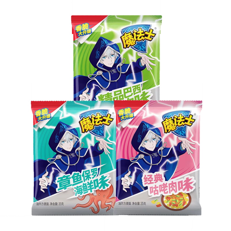 魔法士干脆面大包整箱30包巴西烤肉味干吃面香烤鸡翅海鲜味点心面