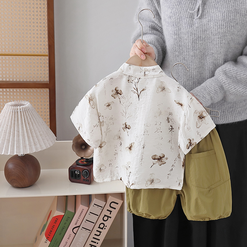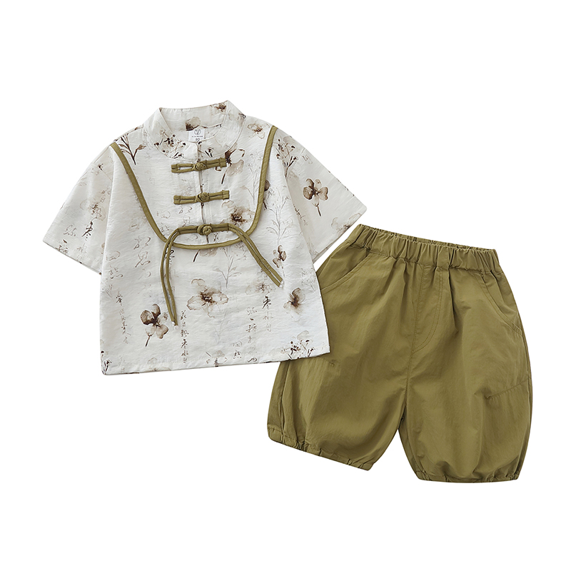 夏装 潮男宝宝唐装 短袖 儿童小少爷国风古风汉服夏季 套装 男童新中式