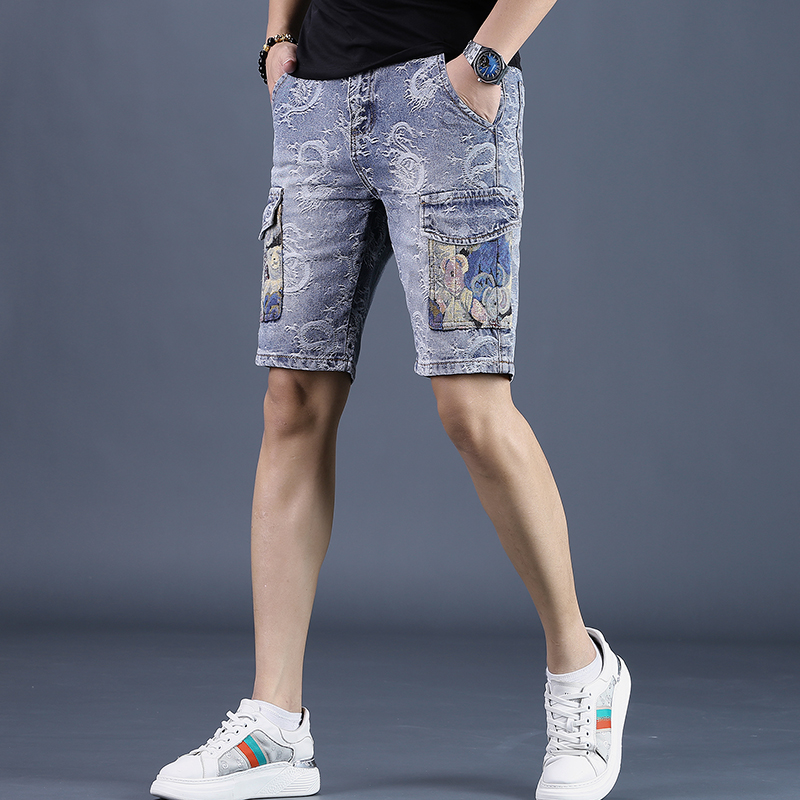 高街阔腿工装 男秋季 裤 大码 子潮 V37美式 宽松伞兵裤 复古迷彩牛仔裤
