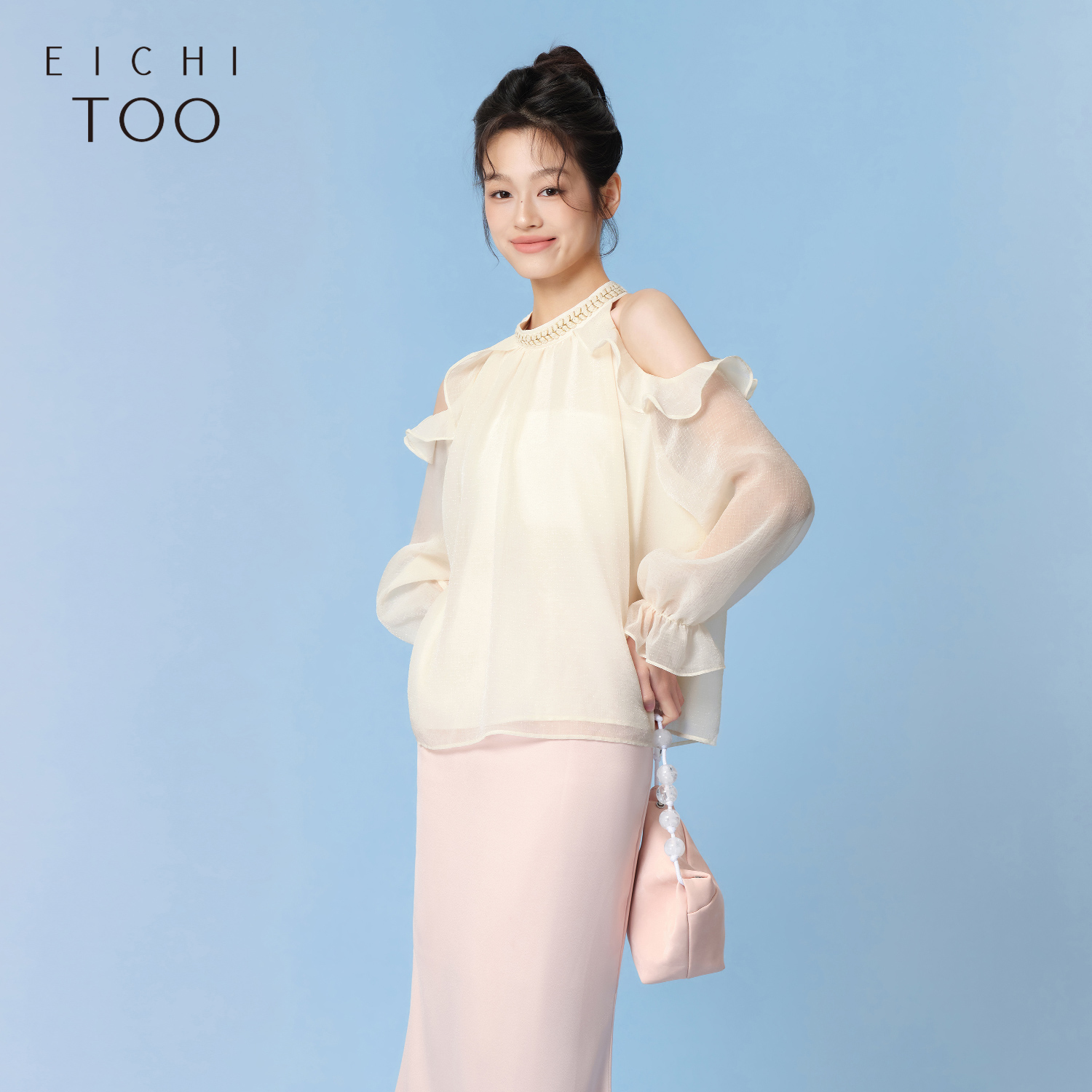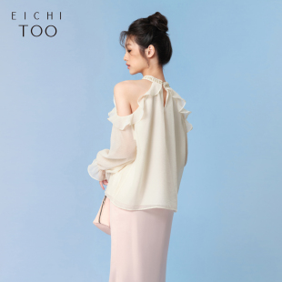 雪纺衫 度假风荷叶边设计感挂脖无袖 新款 爱居兔夏季
