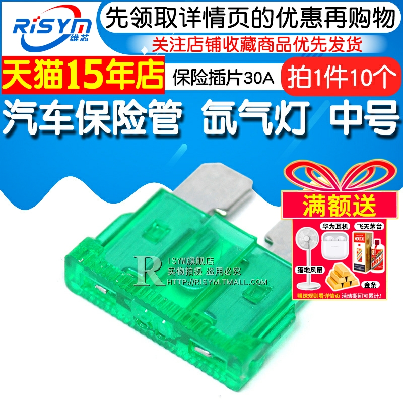 氙气灯保险丝保险管中号 10个 中片 30A 保险插片 汽车保险管