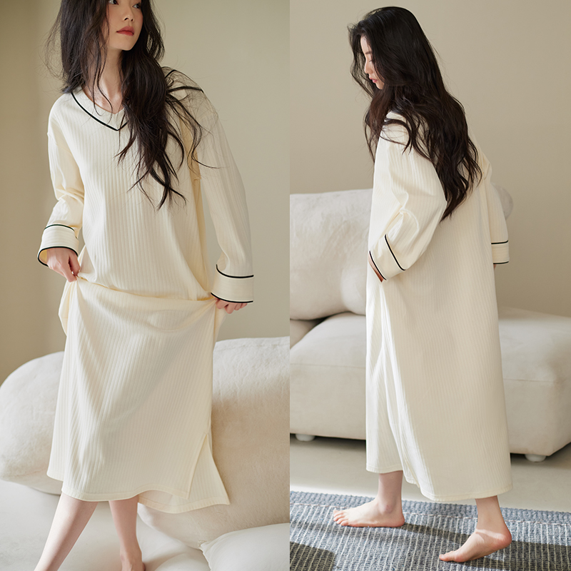 浴袍秋冬家居服 睡衣休闲慵懒风睡裙大码 轩靓睡袍女春秋季 纯棉长袖