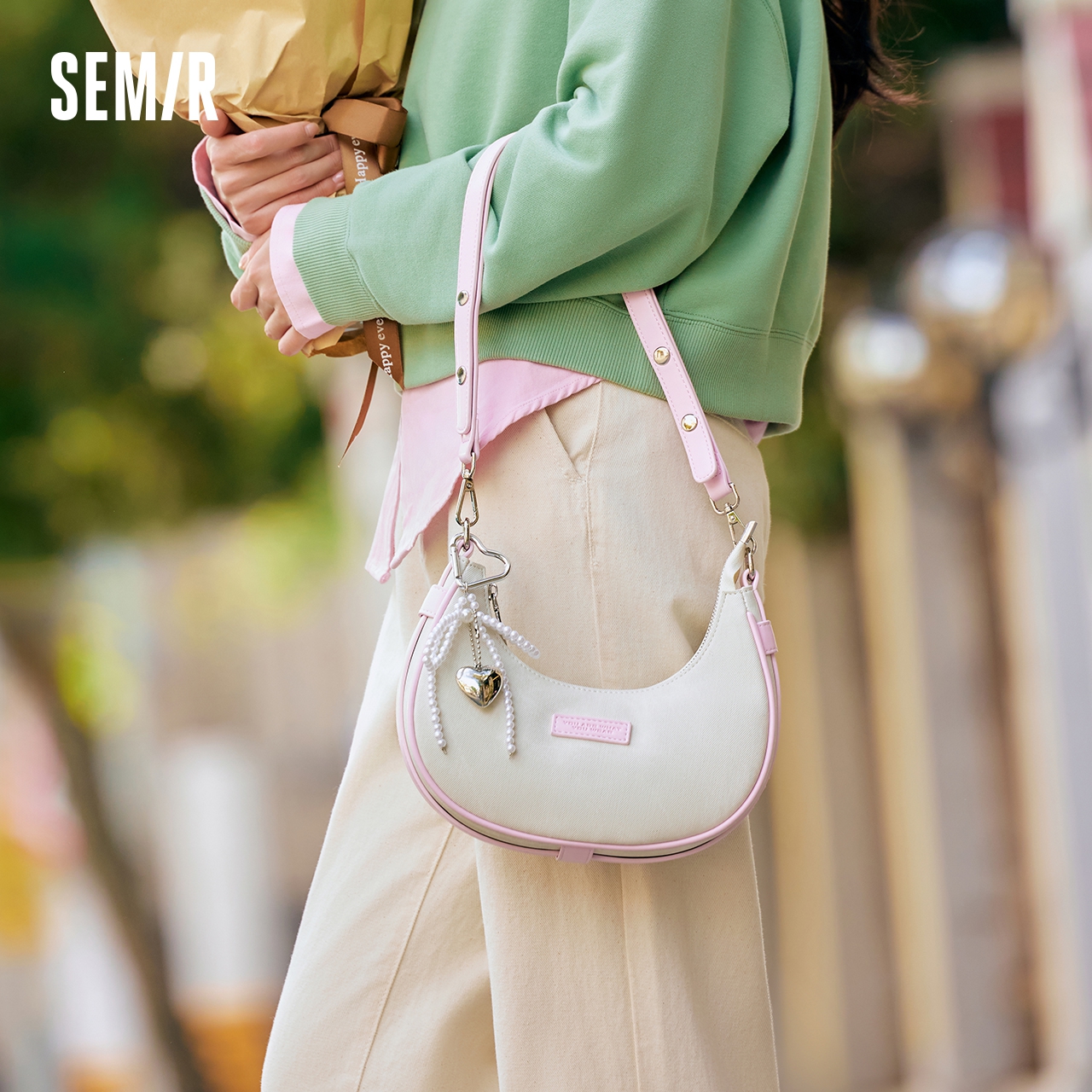 森马包包腋下包女2025新款 单肩包仿牛仔擦色斜挎包洋气精致新月包