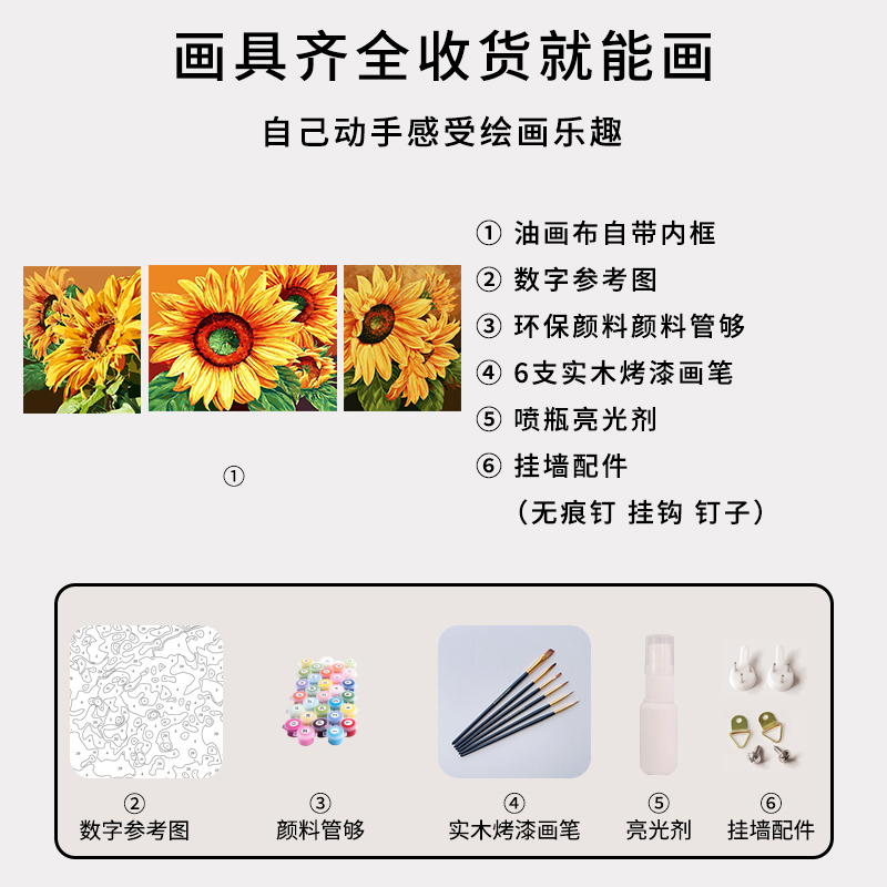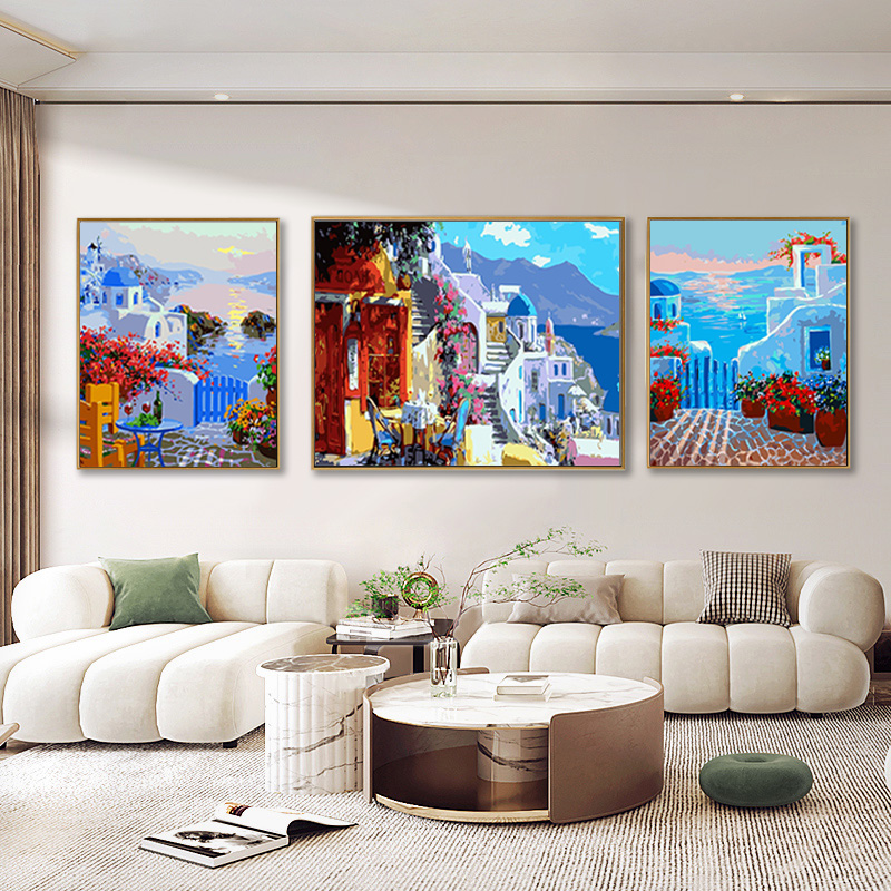 三联数字油画diy油画填充挂画三拼现代轻奢客厅沙发背景墙装 饰画