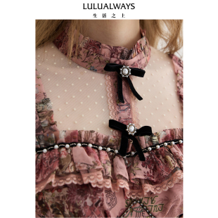 秋季 原创设计感气质过膝长裙 造型飘片围巾领印花连衣裙2025新款
