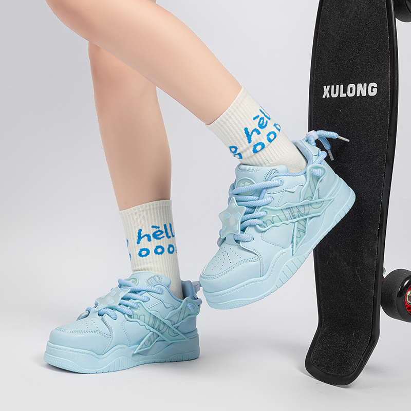 板鞋 男鞋 革面休闲鞋 多巴胺色系透气男士 特步海浪鞋 运动鞋 秋冬新款