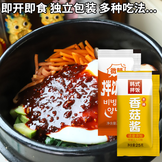 香菇石锅拌饭酱韩式 仲面景商用 甜辣酱料不辣儿童米饭村独立小包装