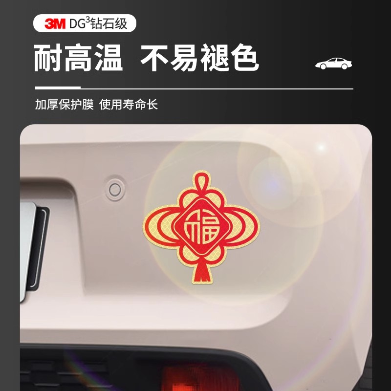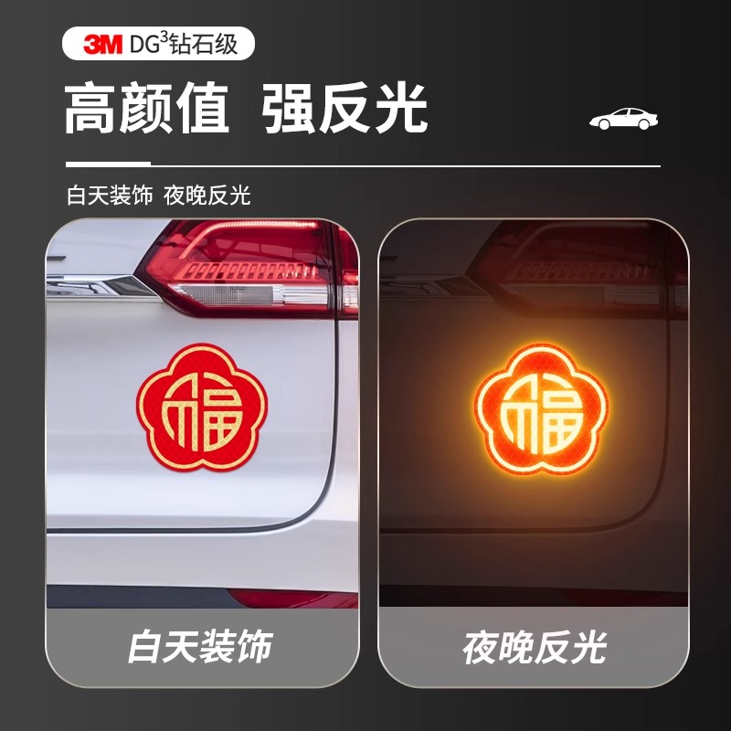 3M钻石级卡通反光贴电动汽车出入平安警示装 饰贴喜庆新春身车贴