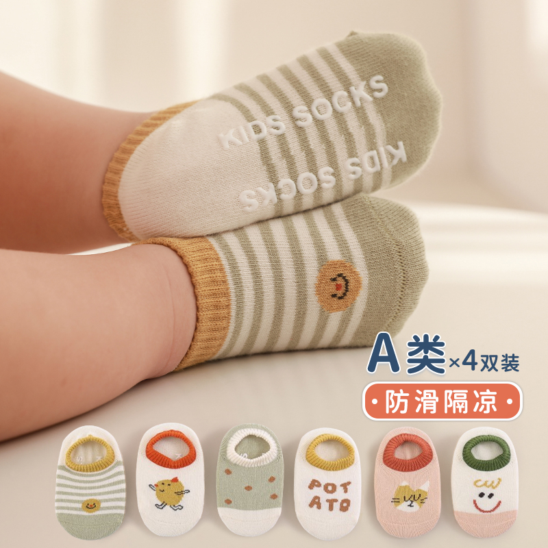 婴儿袜子春夏幼儿学步船袜不掉跟室内防滑隔凉地板袜男童女童短袜