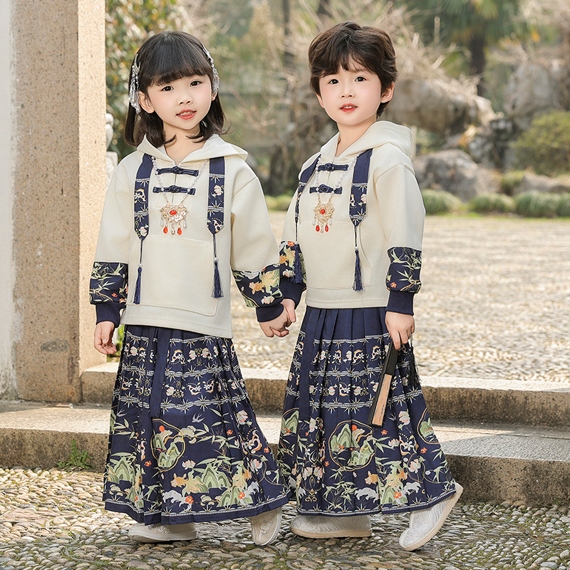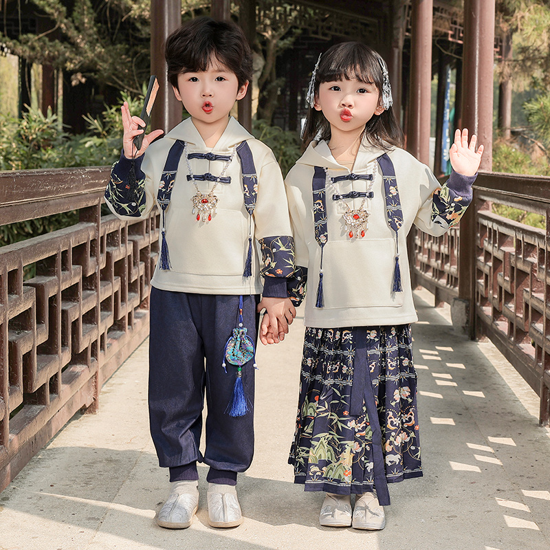 春秋拜年服儿童姐弟装 古风卫衣套装 男童新中式 马面裙女童2025新款