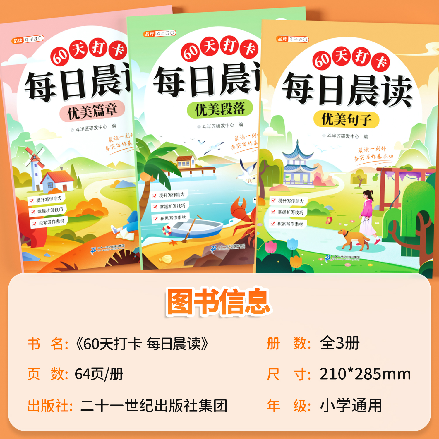 斗半匠60天优美句段篇积累打卡小学语文作文素材每日晨读美文优美句子积累大全小学生专用好词好句好段阅读开学一年级二三四五六