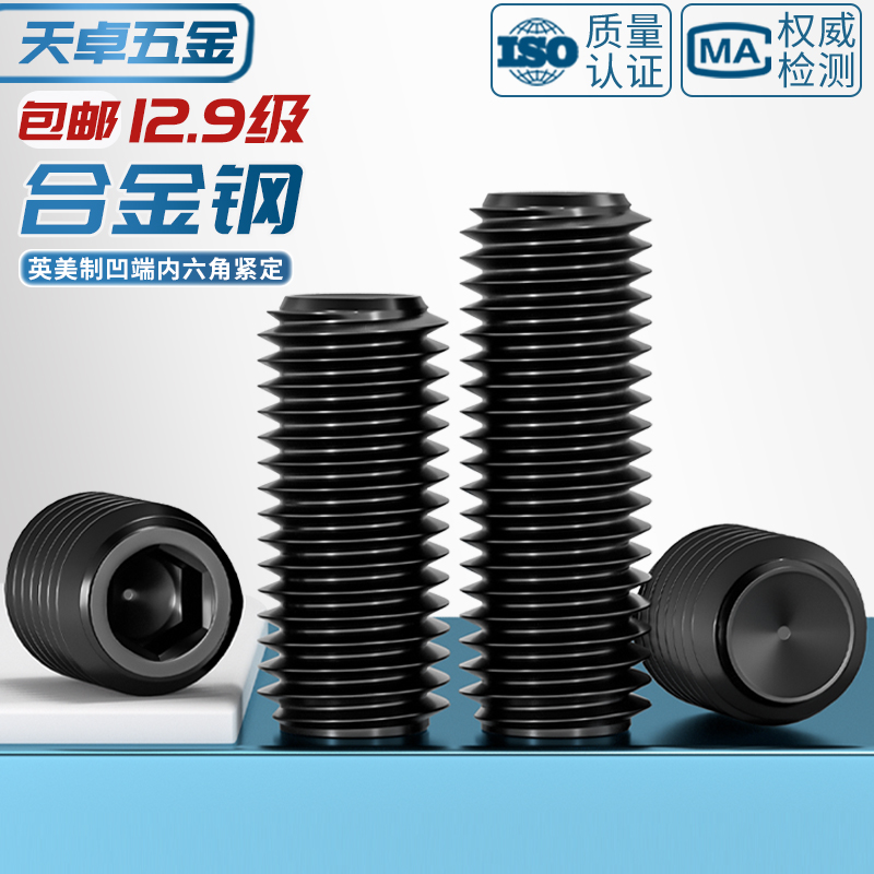 美制英制12.9级紧定螺丝凹端高强度内六角无头机米UNC止付螺钉UNF
