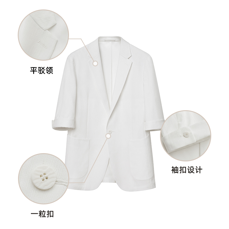 新品 西装 商场同款 男士 西服外套SMS4106 白色一粒扣短袖 JDV秋季
