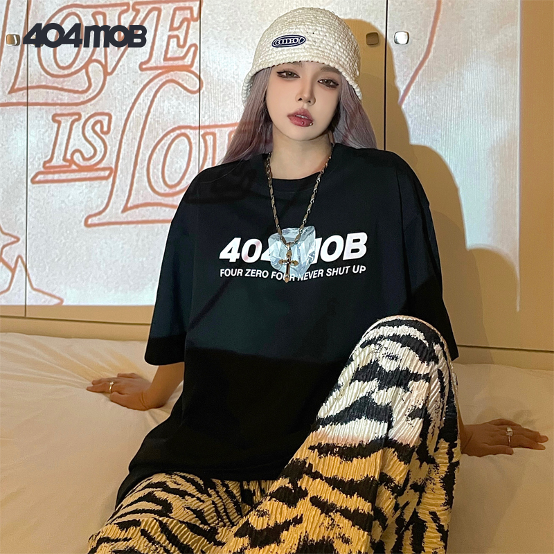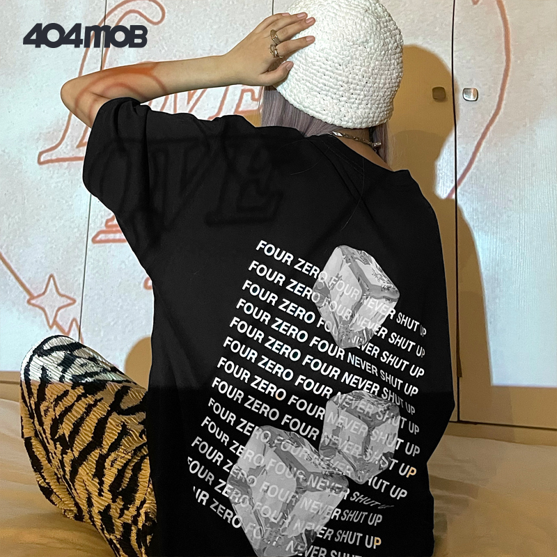 404MOB立体冰块字母印花短袖 打底 T恤男女潮流街头ins宽松情侣半袖