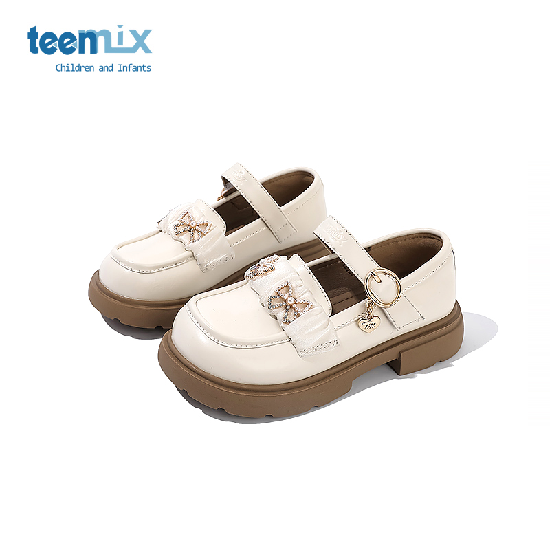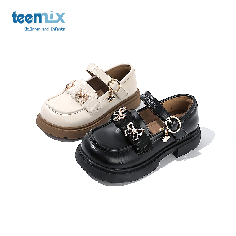 天美意2025年新款 水晶鞋 女童小皮鞋 软底单鞋 黑色高跟鞋 儿童公主鞋