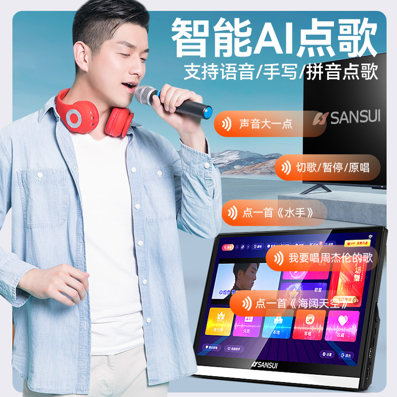 山水Q085家庭KTV音响套装 点歌触摸屏一体机家用卡拉ok电视K歌音箱