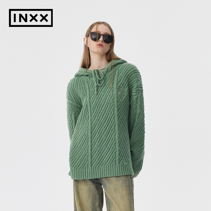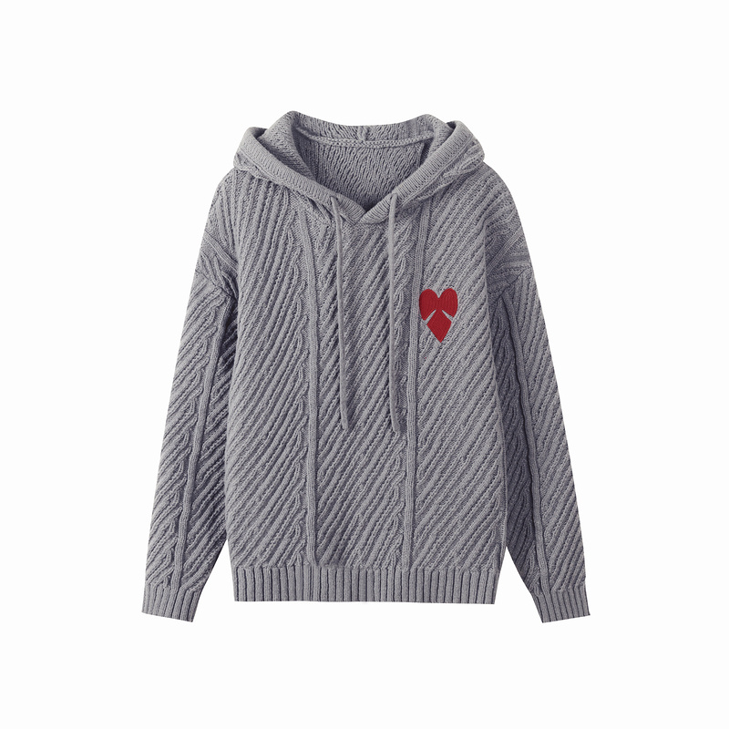 男慵懒风宽松毛衣帽衫 爱心刺绣绞花连帽针织衫 APYD 情侣 INXX