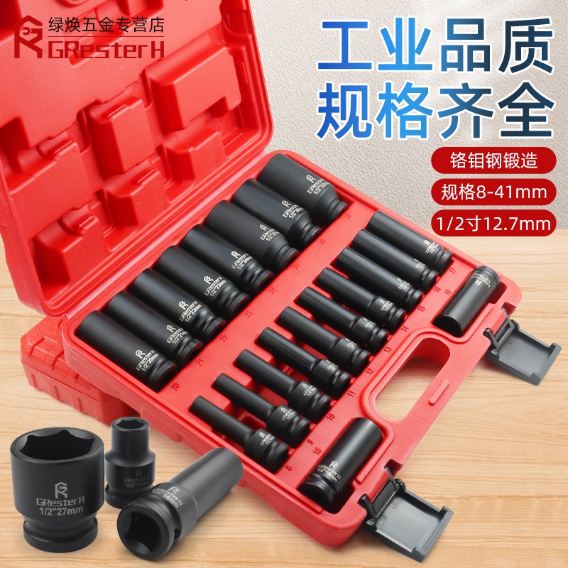 大飞电动扳手六角套筒头锂电架工加长重型套筒头 2套筒组合套装