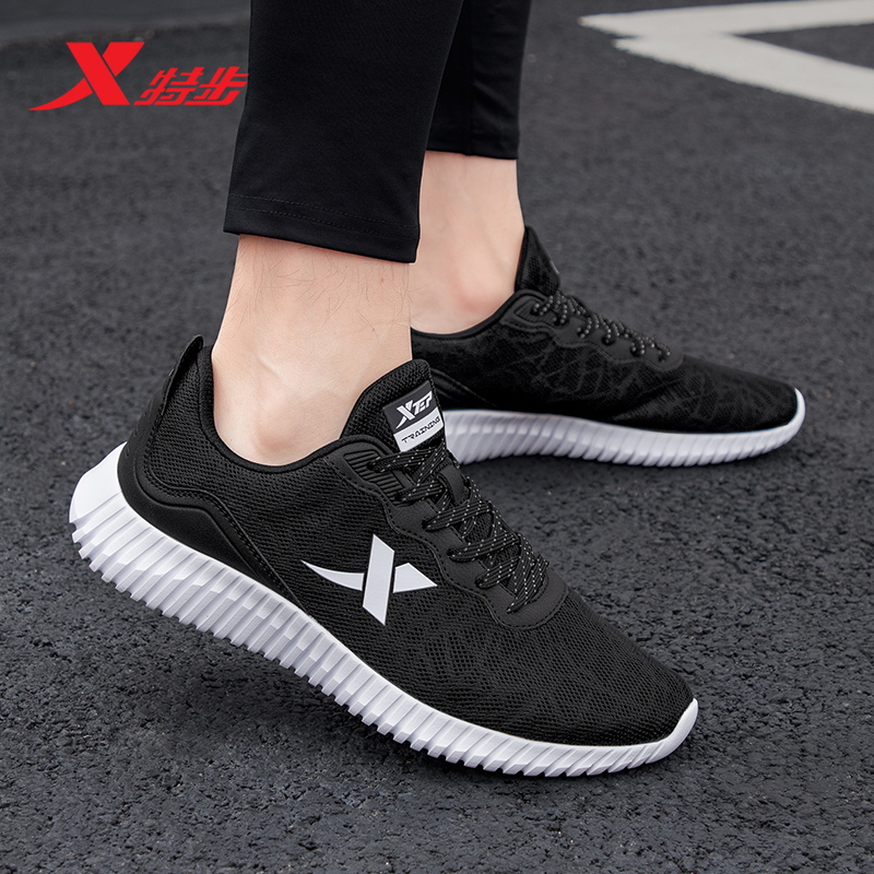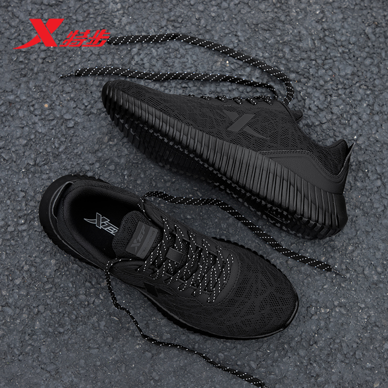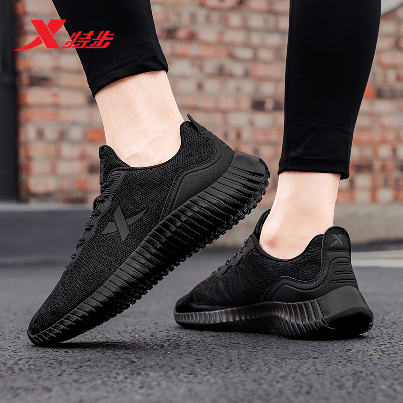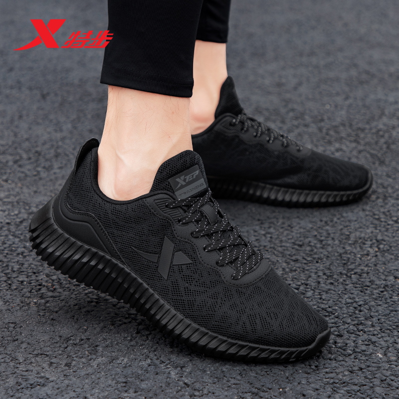 皮面防泼水爸爸减震网面休闲鞋 特步跑步鞋 黑色运动鞋 秋冬新款 男鞋