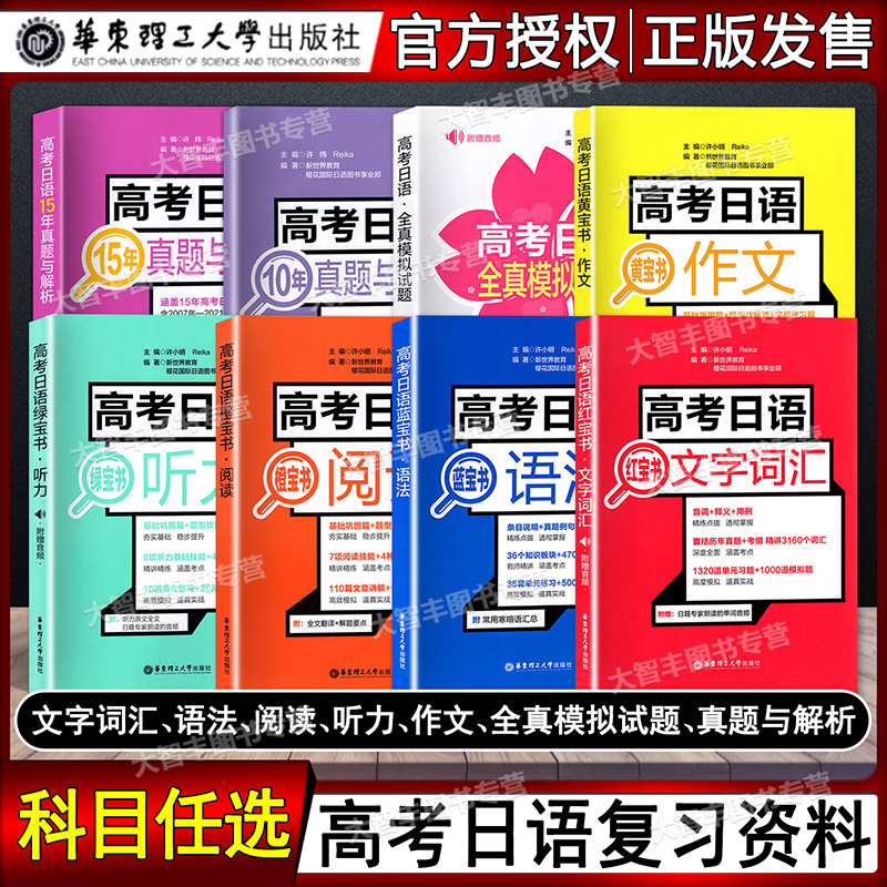 高考日语基本功 橙宝书阅读训练绿宝书听力训练词汇红宝书文字词汇10年真题与解析全真模拟试题卷 高考日语蓝宝书语法 黄宝书作文
