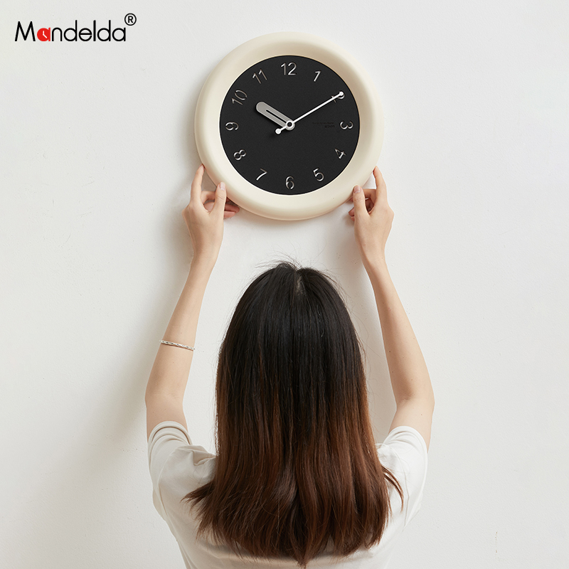 Mandelda免打孔钟表挂钟客厅现代奶油风2025款 餐厅简约挂墙面时钟