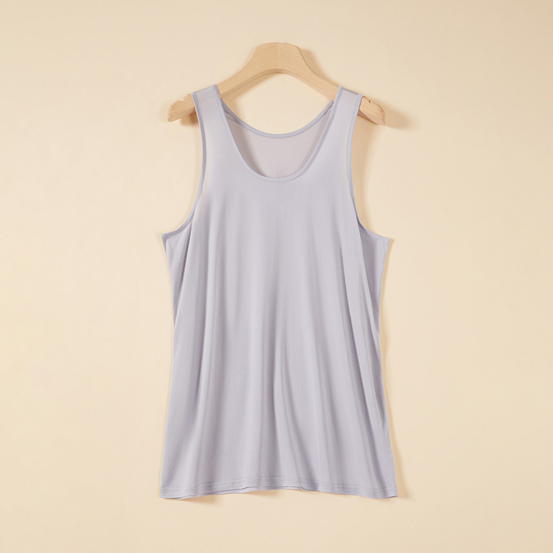 透气夏季 高档薄款 跨栏T恤衫 背心桑蚕丝针织宽松大码 100%真丝男士