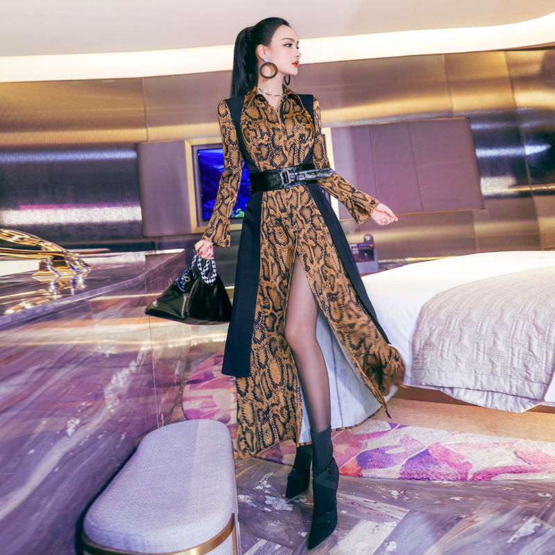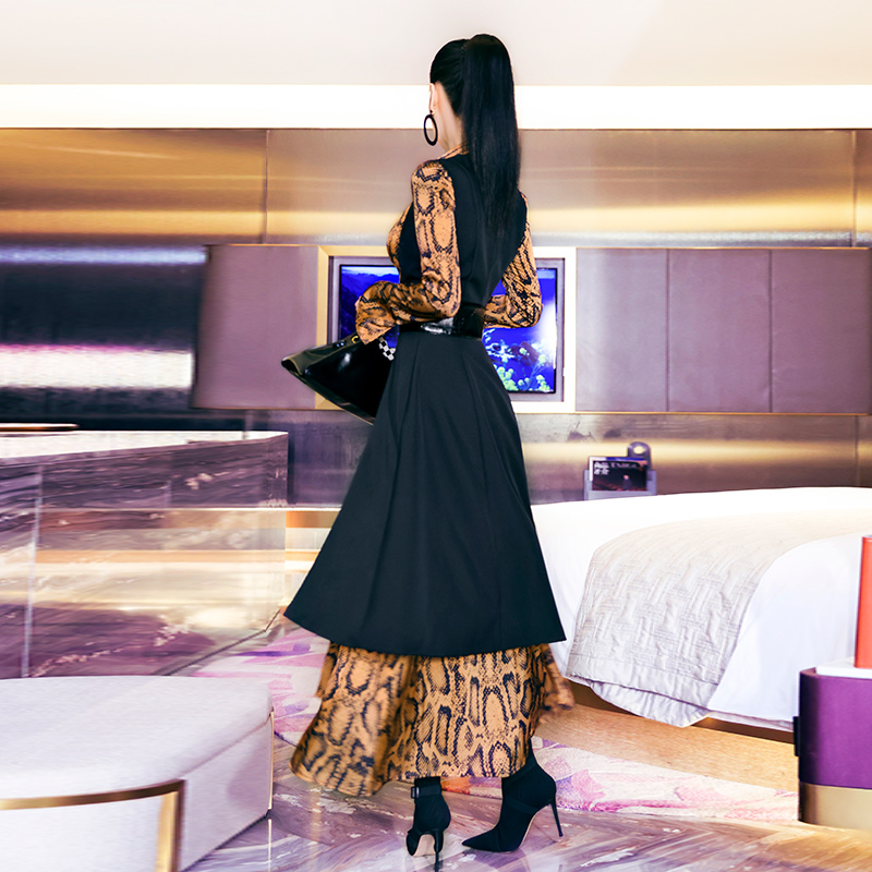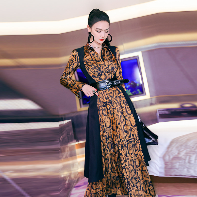 裙套装 VJE欧美蛇纹印花连衣裙造型马甲两件套时尚 气质女人味衬衫