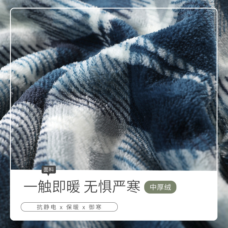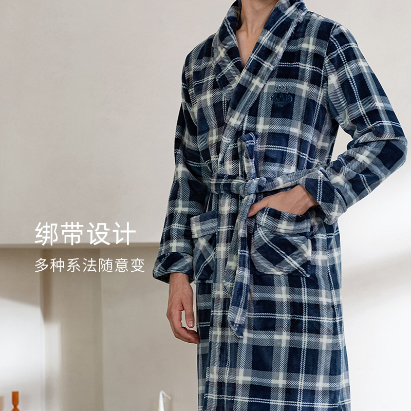 秋冬加厚法兰绒浴袍男保暖珊瑚绒简约格子睡袍冬季 秋鹿 抗静电