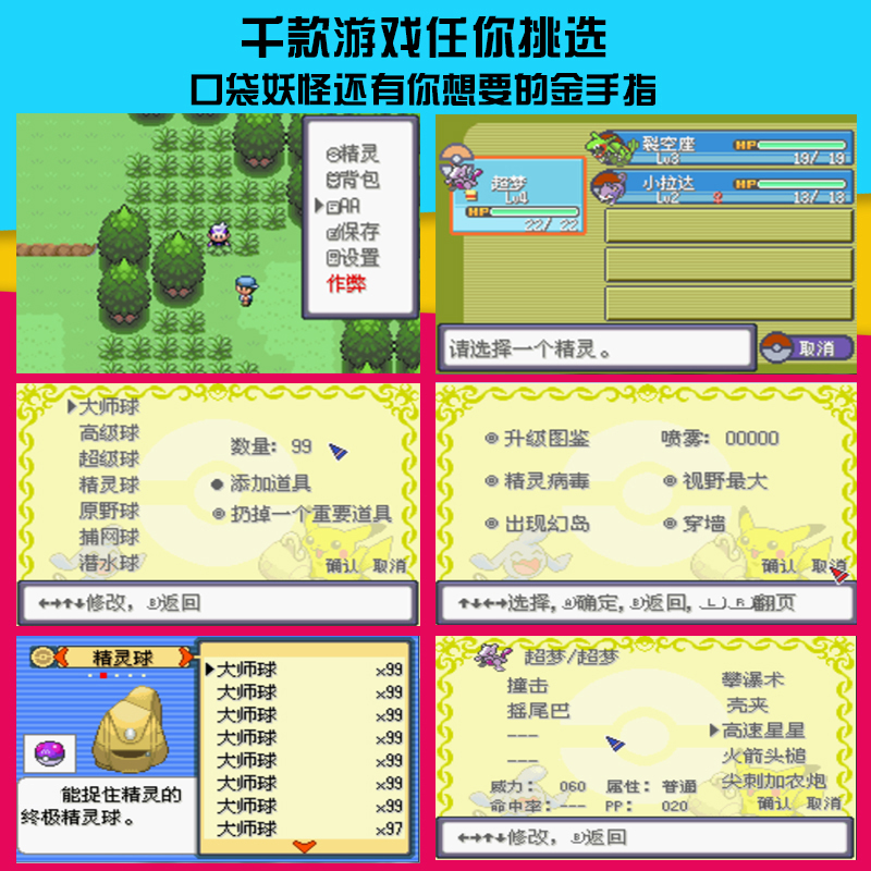 口袋妖怪金手指PSP4000游戏机马里奥gba神奇宝贝宠物小精灵掌机复古宝可梦破解版 皮卡丘 mp5掌上儿童游戏掌机