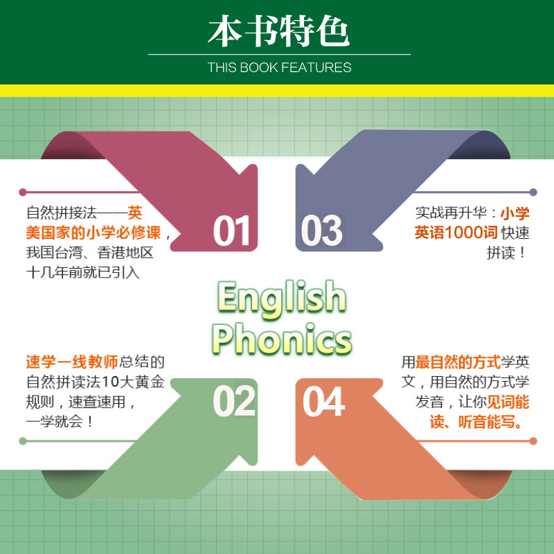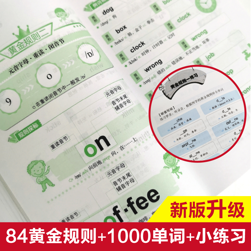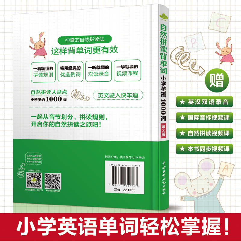 每天5分钟少儿英语学习法自学入门零基础小学英语自然拼读 第2版 音标单词发音书籍 自然拼读背单词:小学英语1000词 当当网正版