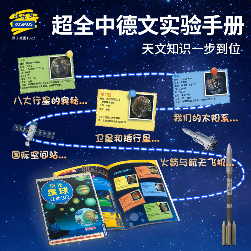 科乐多kosmos八大行星夜光墙贴3D星球立体儿童房装 饰贴纸天文科学