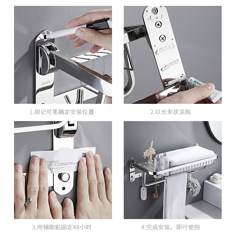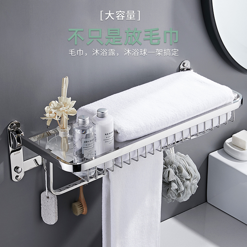 304浴室浴巾架不锈钢毛巾架卫生间置物架壁挂免打孔加厚五金挂件