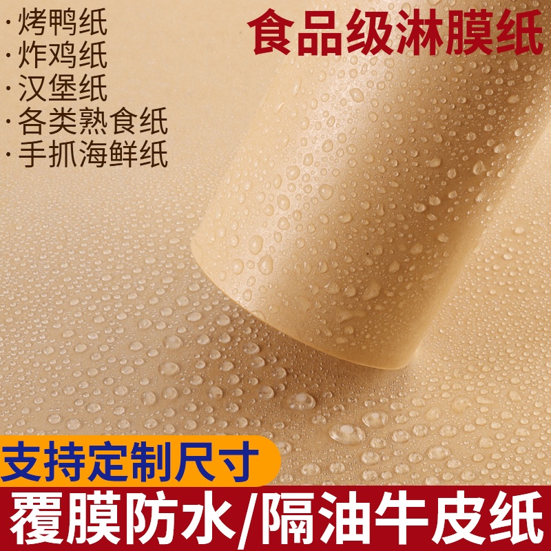 食品级覆膜淋膜牛皮纸手撕烤鸭纸烧鸡烧鹅麻椒鸡食品包装 纸防水防油定制酒坛纸90克烧烤熟食餐盘餐桌垫纸