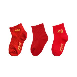 女婴儿男宝宝红色袜子薄款 周岁新生满月宴百天百日抓周宴礼盒 夏季