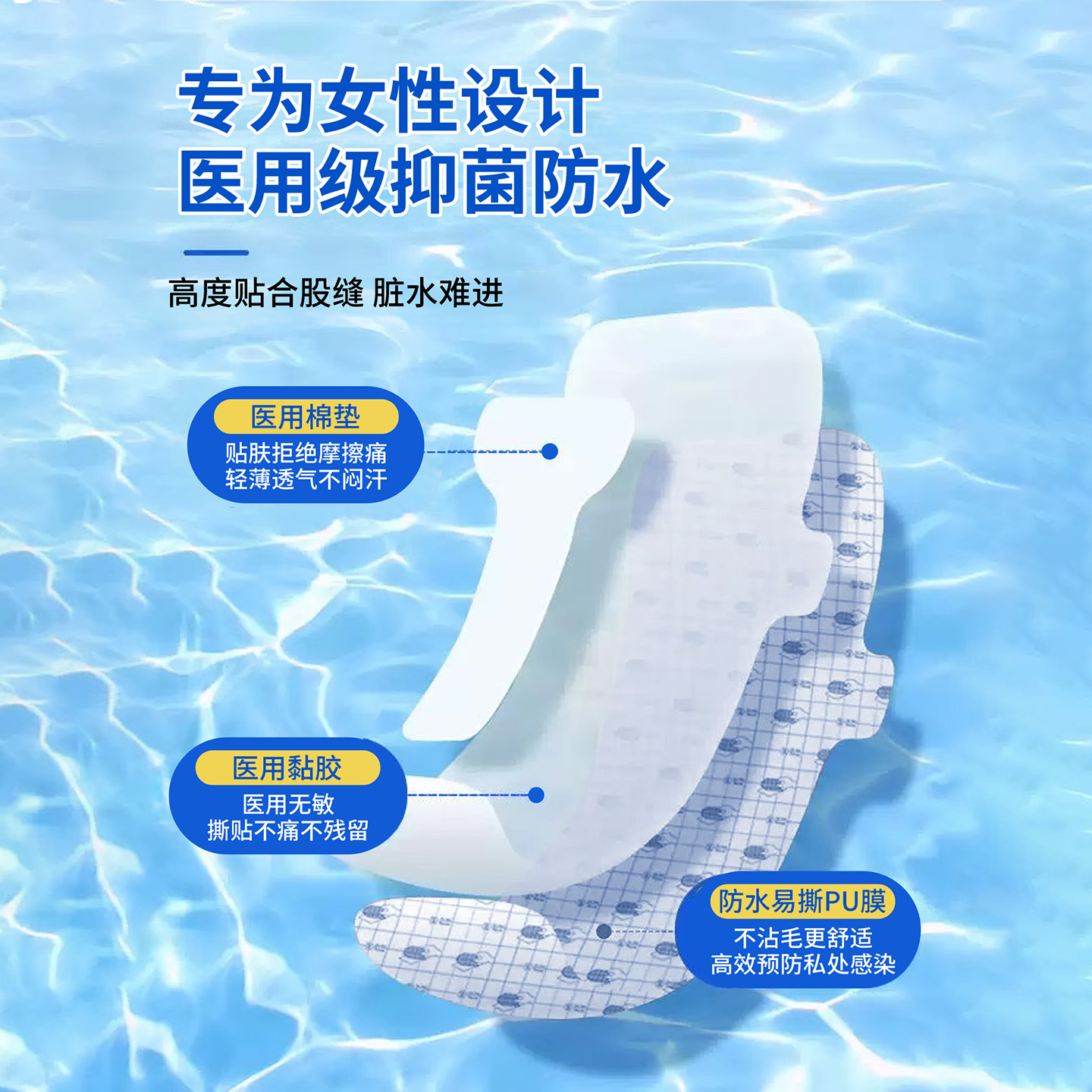 游泳私密防水贴女性隔菌私处防护女童姨妈期护垫泳衣内裤 防止感染
