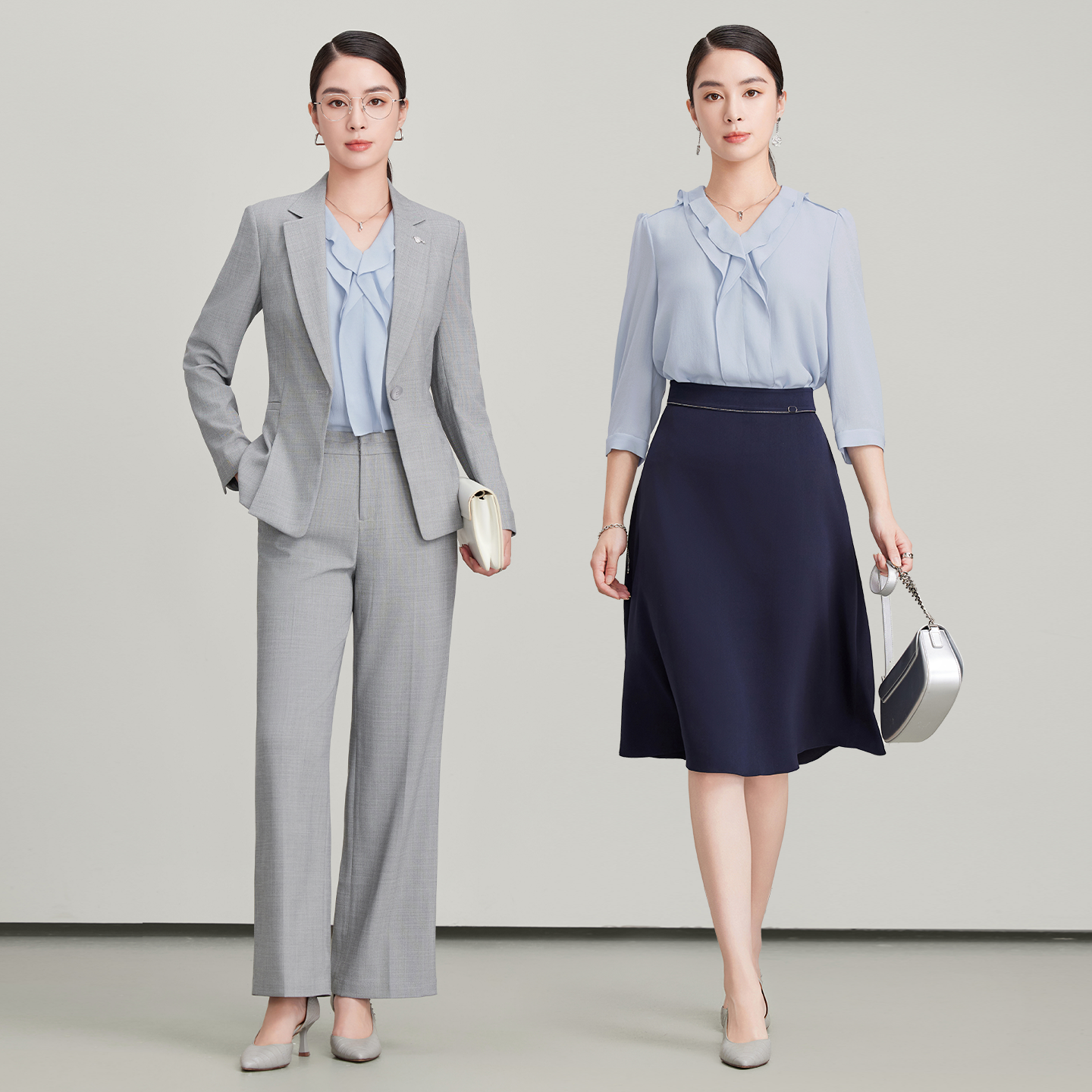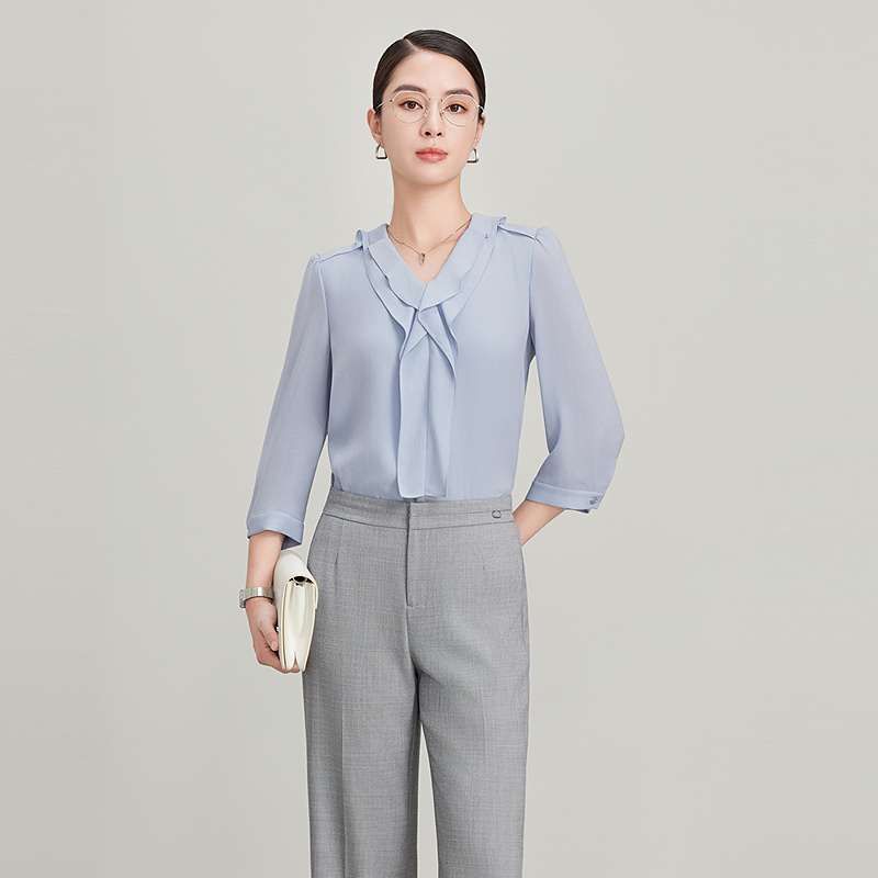 气质套装 赢智尚木耳荷叶边V领醋酸衬衫 上衣高端精致两件套时尚