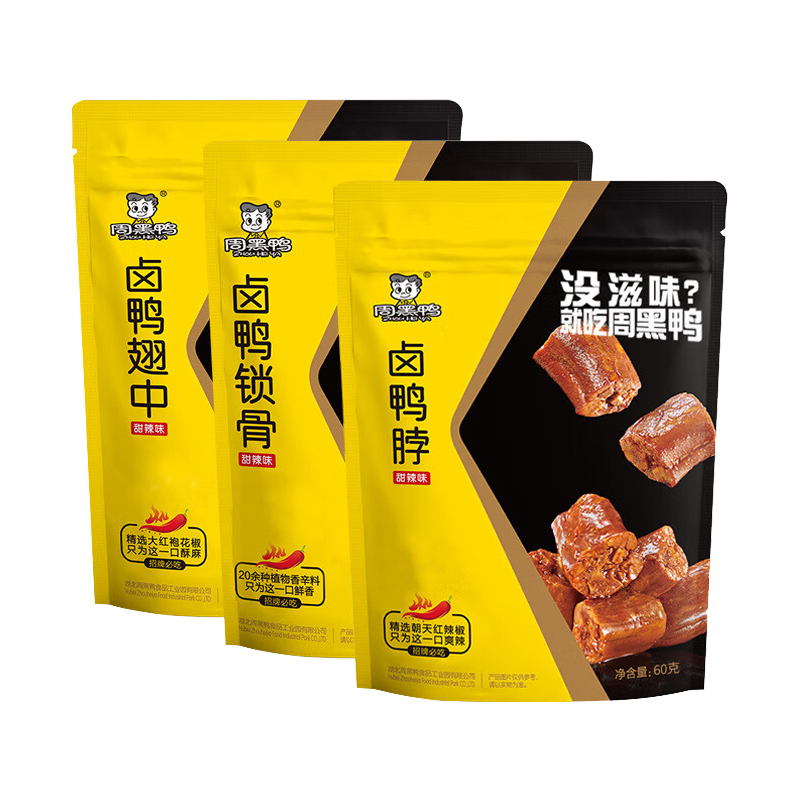周黑鸭鸭脖鸭锁骨鸭翅中鸭货零食特产麻辣微甜卤味肉食解馋充饥