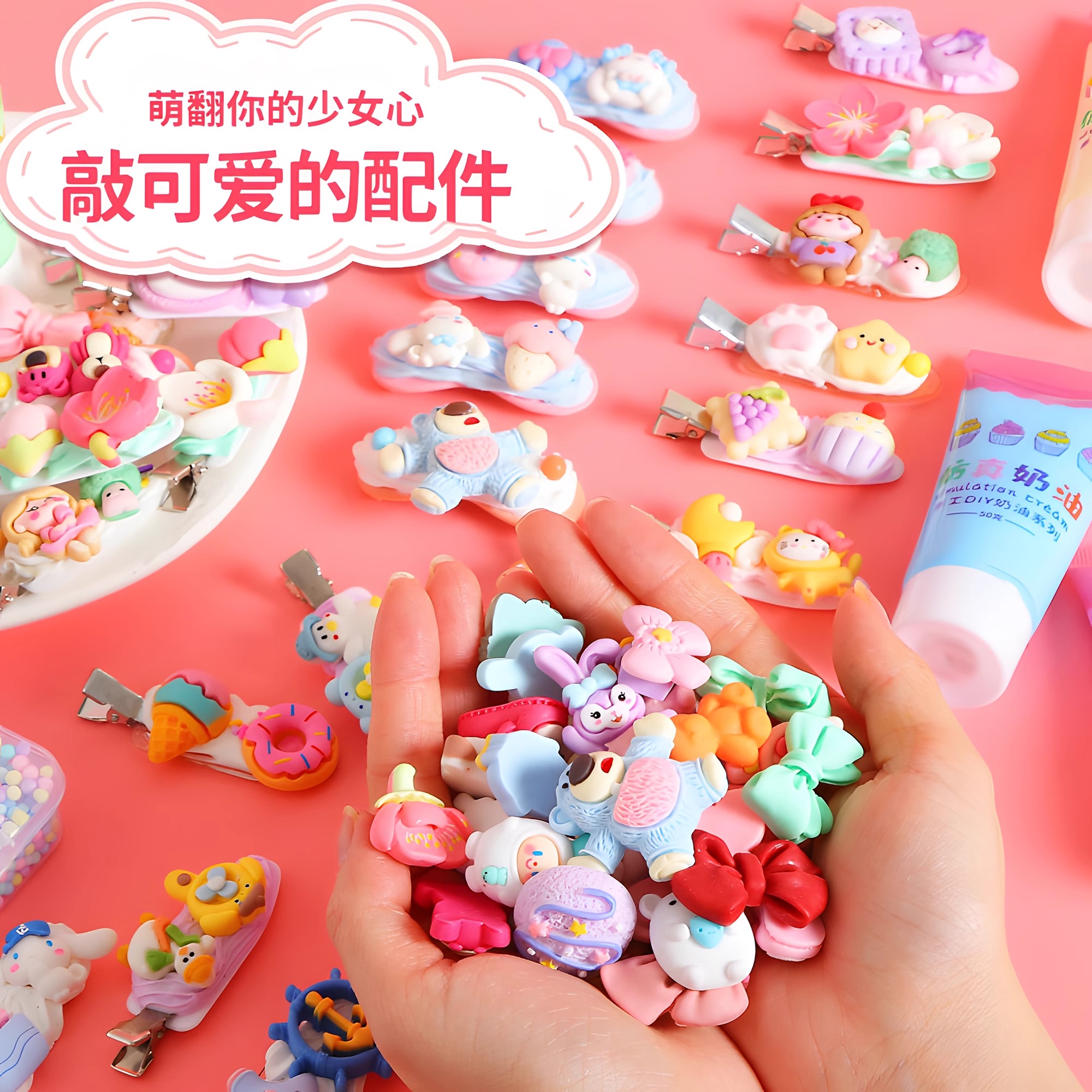2025新款 女孩儿童过家家玩具6岁以上 奶油胶发卡手工diy材料包爆款